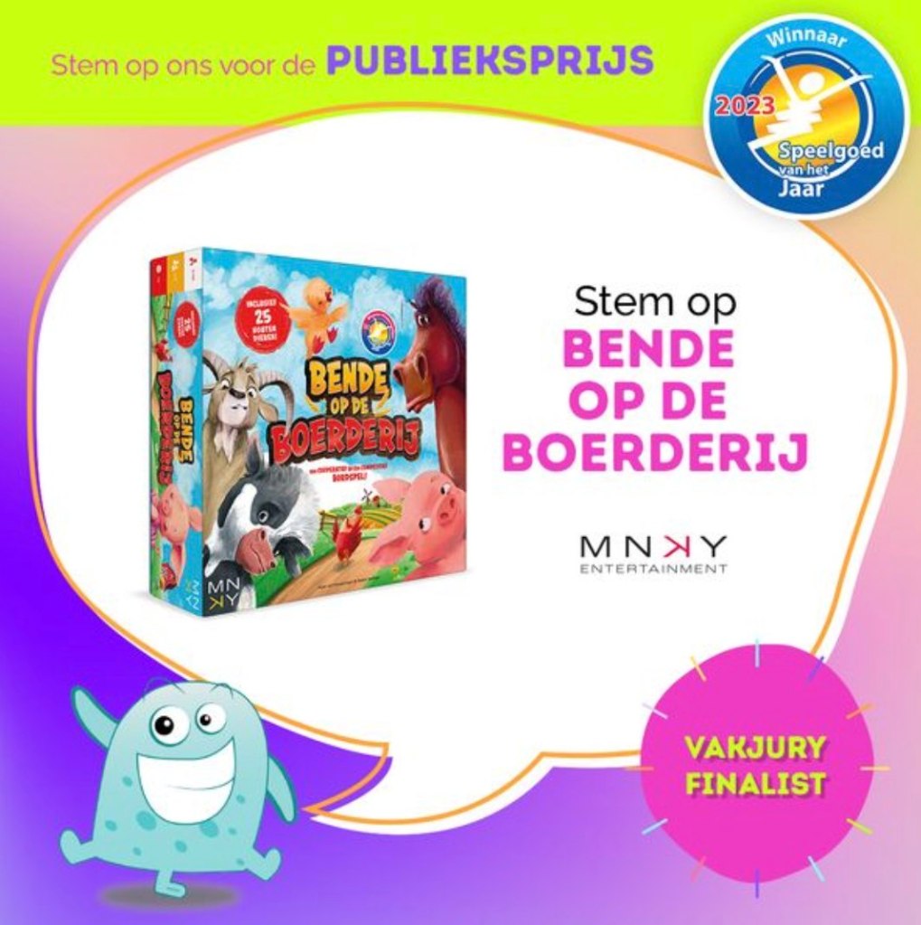 Het kinderspel Bende op de Boederij, uitgegeven bij MNKY Entertainment heeft de Speelgoed van het Jaar prijs gewonnen! Een mooie pluim op de speluitgaves van het afgelopen jaar, waar we de laatste twee jaar aan hebben gewerkt. Hoe is het spel tot stand gekomen? Daar vertellen we wat over in deze toffe reportage van OOG TV:
